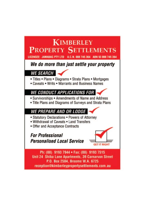 Send an email to Kimberley Property Settlements - see Ad